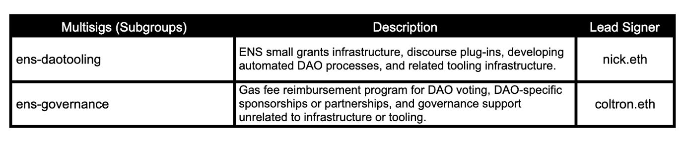Funding in this category is related to the two Meta-Governance subgroup multi-sigs. These have been reviewed and approved by the Meta-Gov Stewards.
